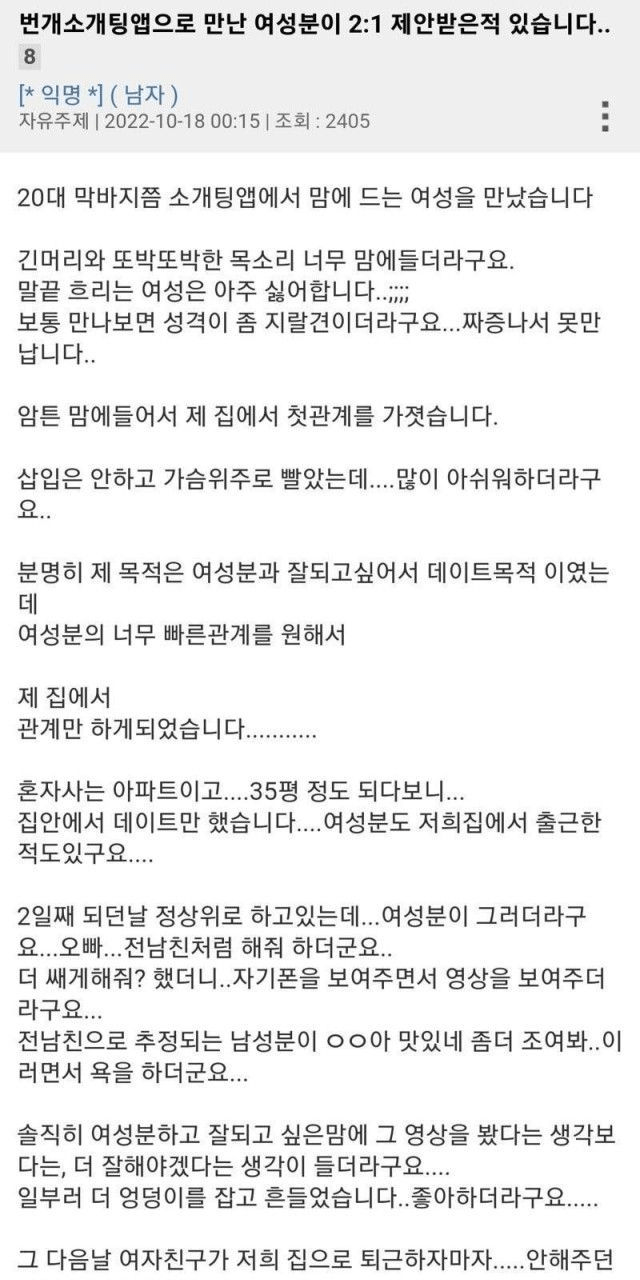 번개소개팅 앱에서 만나 2대1로 ㅂㄱ